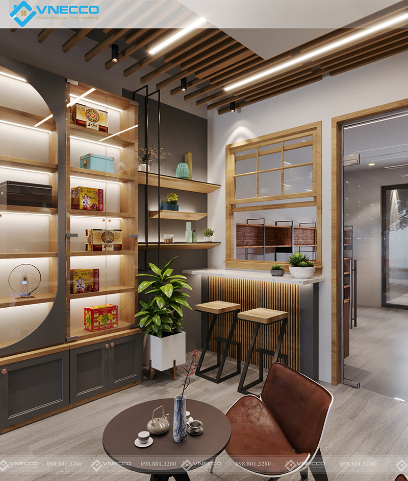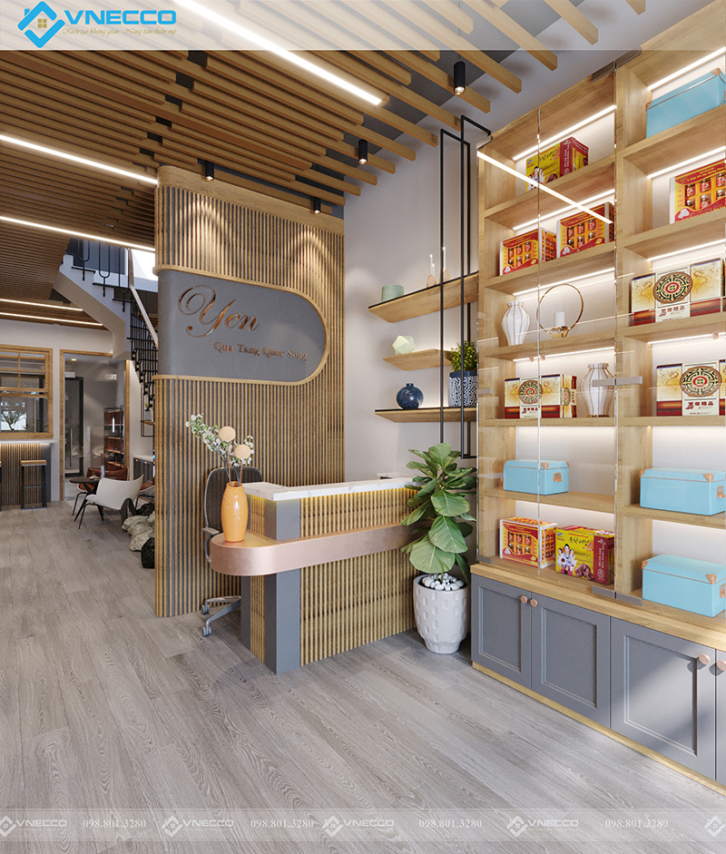 Thiết kế Phòng trưng bầy sản phẩm Yến, sử dụng thiết kế mang ngôn ngữ hiện đại, đơn giản pha thêm chút kiến trúc truyền thống của văn hóa Nhật đã tạo lên một không gian sang trọng, rõ ràng khi là điềm nhấn tôn vinh sản phẩm của thiên nhiên này.