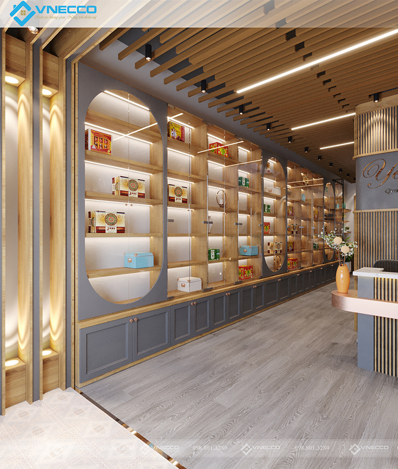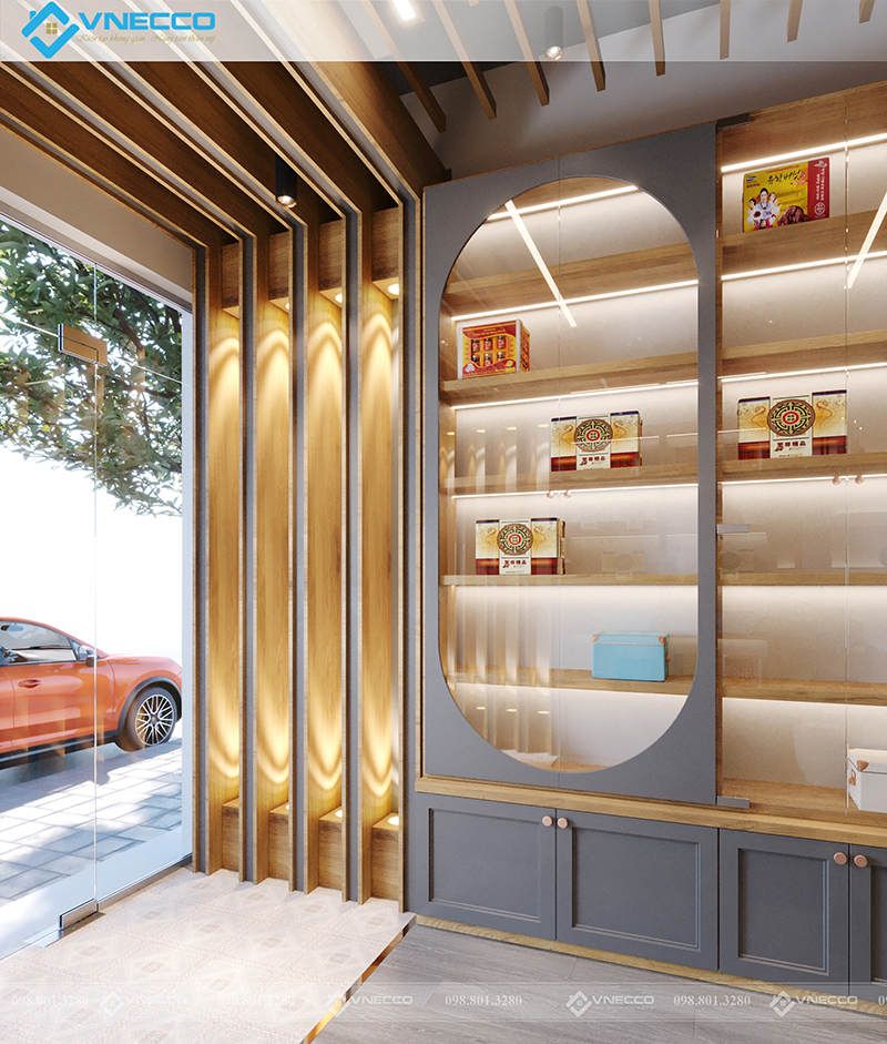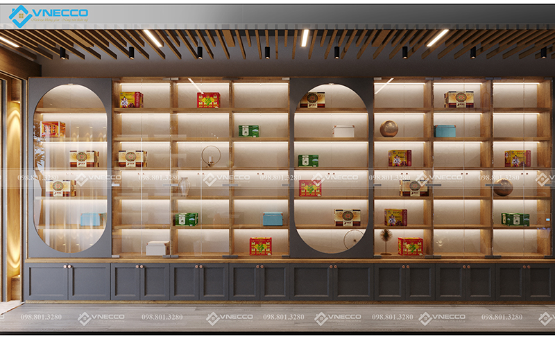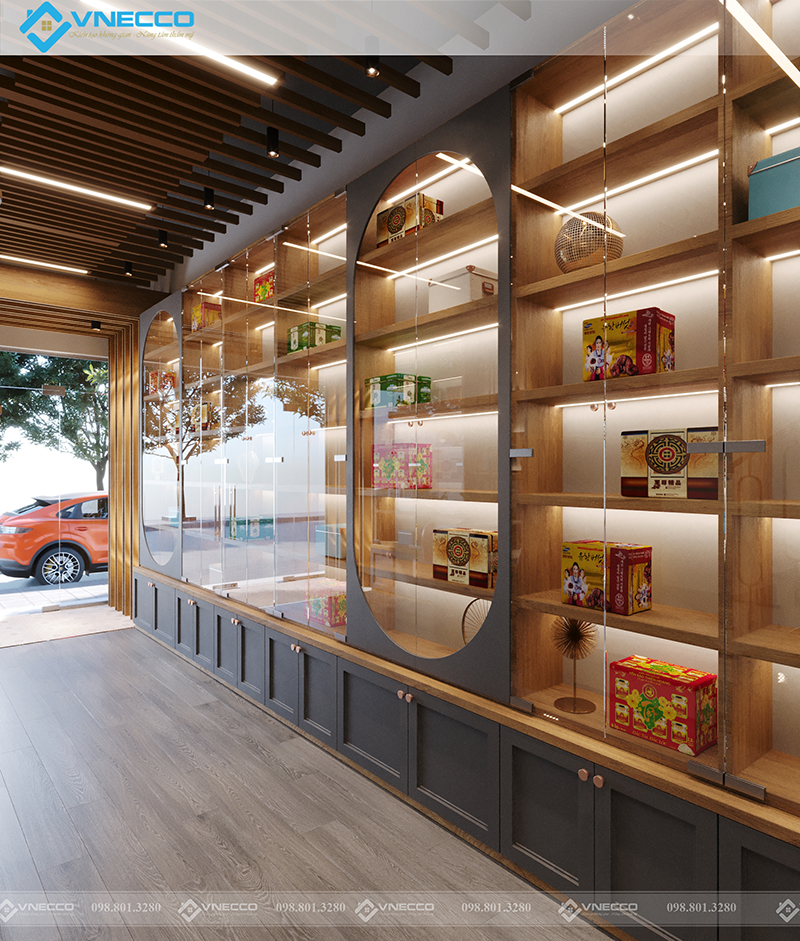 Phối cảnh góc tủ trưng bầy sản phẩm